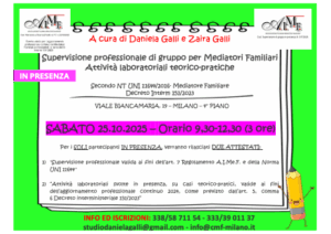 N PRESENZA – Attività laboratoriali su casi teorico-pratici + Supervisione professionale di gruppo per mediatori familiari (Patrocinio A.I.Me.F. N. 17/2025 – 79/2025)